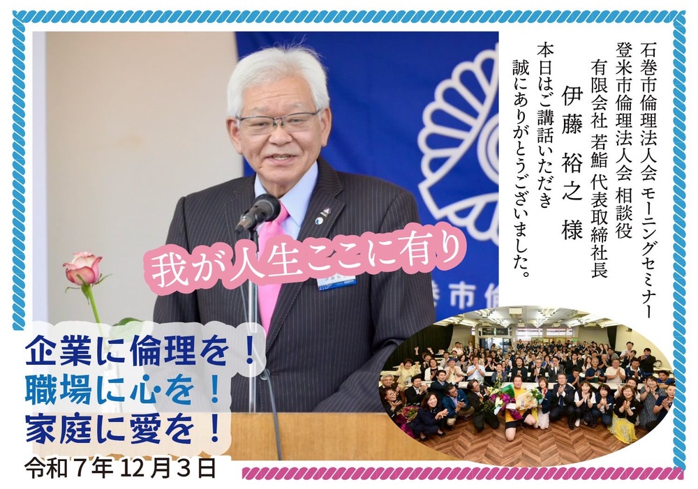 第1759回モーニングセミナーは、12月3日(水)石巻プレナホールにて37名で開催されました。