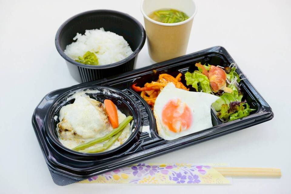 今朝は濃厚なホワイトソースがアクセントのハンバーグ&ナポリタン。