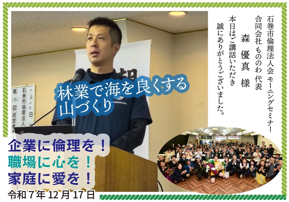 翌日のモーニングセミナーは『倫理経営と事業の繁栄』というテーマでのお話しです。