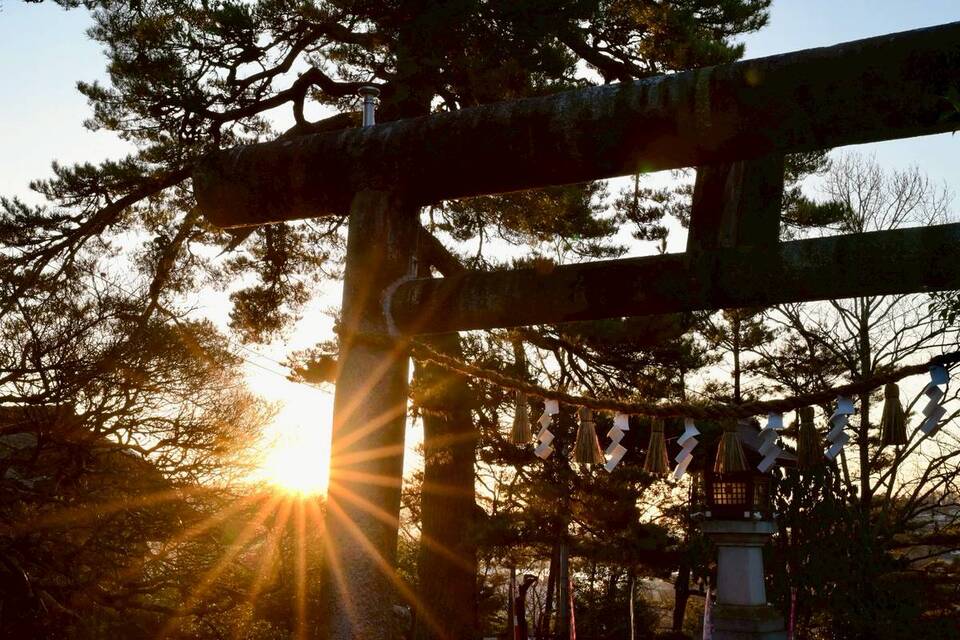 日和山から望む清々しい朝日を背に、南奈央子会長が神殿に玉串を奉奠されると同時に、参列者それぞれが今年一年の新たな誓いを心に刻みました。