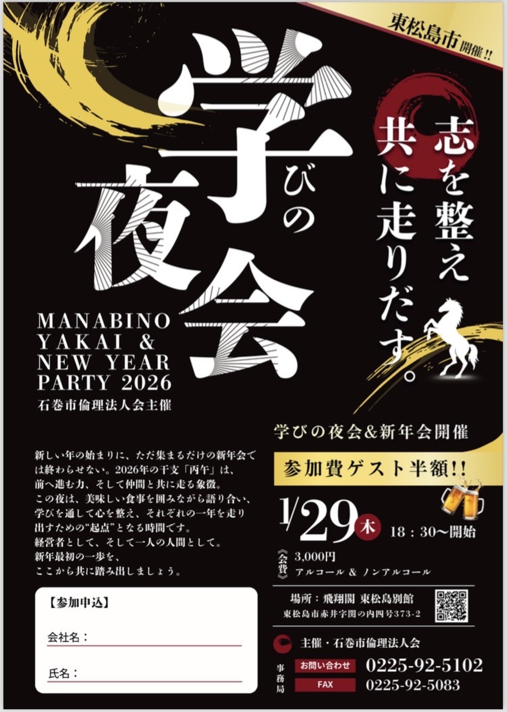 また、1月29日(木)は新年会&学びの夜会を、飛翔閣様 東松島別館にて開催されます。