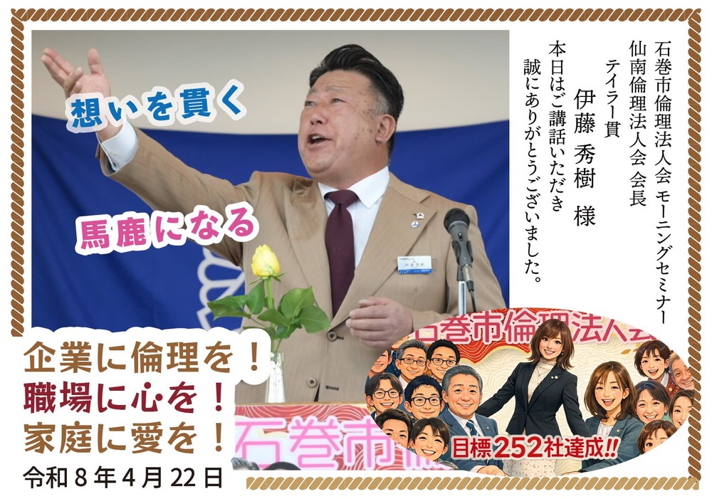 第1777回モーニングセミナーが石巻プレナホールにて開催されました。